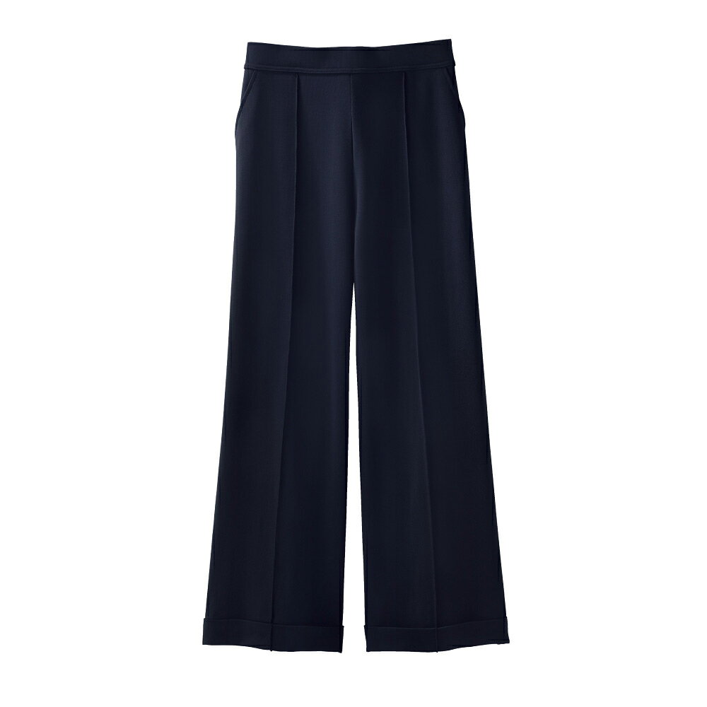 こだわりの細魅せポイント(1)ウエストはラクな総ゴム仕様(2)ワイド過ぎないシルエット(3)センターピンタックでいつもキレイに縦のラインを強調(4)縦長に見せるアンクル丈(5)裾カフス仕様でボリュームを持たせ、足首を細見せページ下部に画像の説明がございます。