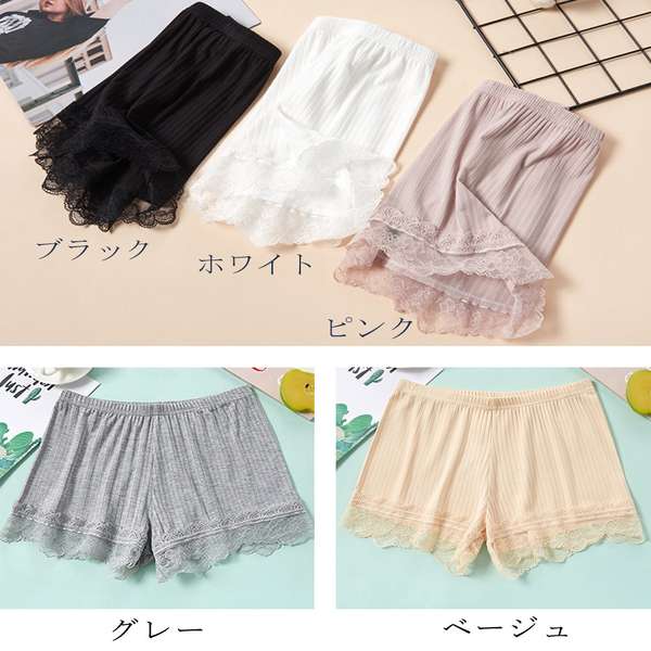商品についてシンプルなデザインにさりげないレースがアクセントのショーツです日常生活にすっと溶け込むような、やさしく安心感のあるベーシックな色ミニスカートやワンピースに薄地のボトムス、インナーの透け、めくれ防止になるペチパンツ 詳細データカラー:ホワイト/ブラック/ベージュ/グレー/ピンク素材:綿95%+ポリウレタン5%サイズ:ワンサイズ総丈:約27cm ウエスト(ゴム仕様):約58-76cm ヒップ:約80-90cm裏地:なし伸縮性:あり透け感:若干あり生産国:中国ATTENTION※すべて平置きサイズです(採寸方法違いより、多少の誤差がございますので、ご了承ください)。
