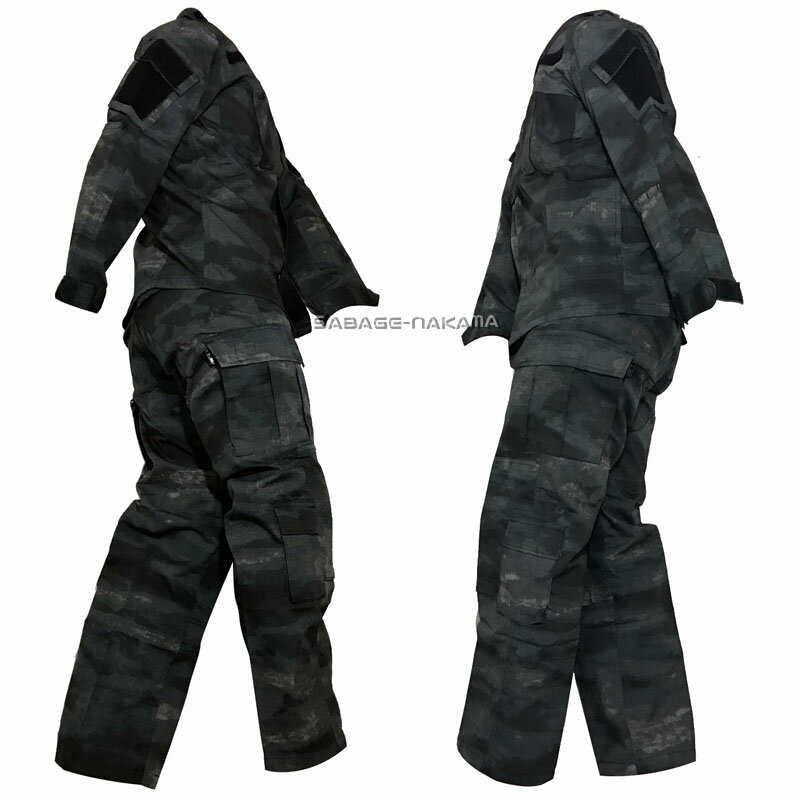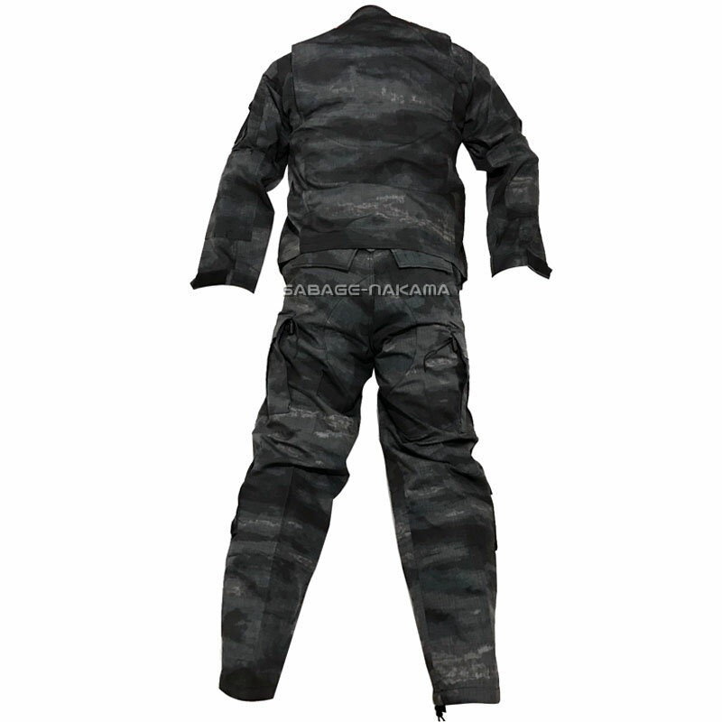夜間戦、暗所、建物内での隠ぺい力に優れた次世代迷彩のA-TACS LE柄の迷彩服。