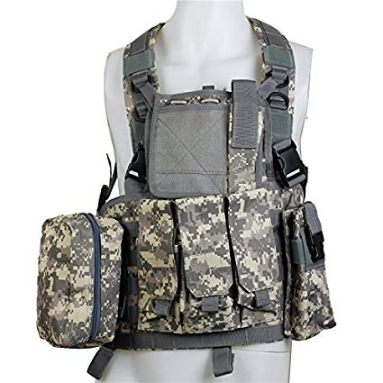 ACU柄の迷彩服とその柄に合わせた帽子、タクティカルベスト、ポーチ各種・スカーフのお得なセットです。