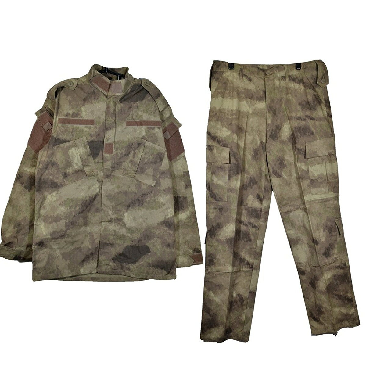 ■形状はACU(アーミーコンバットユニフォームタイプです) ・・細部詳細・・・ ジャケット 開閉 : ジッパー式 胸ポケットX2か所 / 2の腕ポケットX2か所 / 各所ベルクロ付き / エルボーパットを挿入出来るポケット付き パンツ 開閉 : ボタン式 サイドポケット2か所 / お尻ポケット2か所 / 太腿ポケット2か所 / すねポケット2か所 / ニーパットを挿入出来るポケット付き
