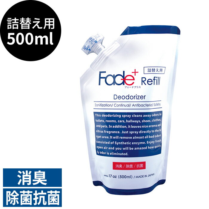 Fade+ フェードプラス 詰替え用 500ml つめかえ 詰め替え 消臭剤 トイレ 衣類 靴 タバコ 煙草 ペット 車 除菌消臭スプレー 除菌 抗菌 部屋 におい 悪臭対策 人工酵素 速効性 持続性 無臭 ポイント2倍